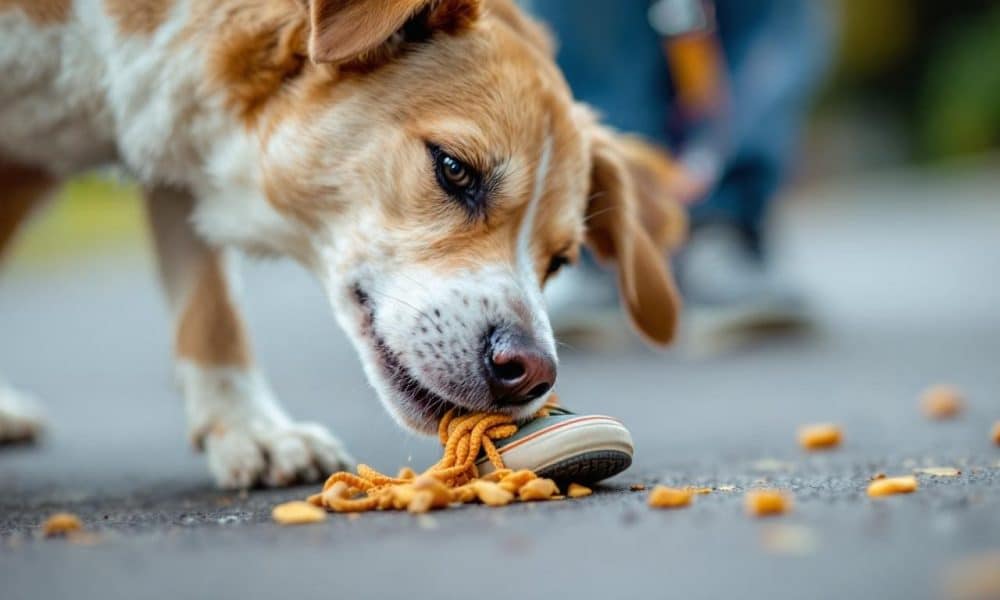 Chewing is natural for dogs, but it becomes problematic when directed at furniture or shoes. Normal play behavior can often result in destructive behavior, and often involves digging or chewing, shredding, and shaking of toy-like objects such as shoes. It often signals boredom, anxiety, or excess energy. Pay attention to when your dog chews – if it happens during your absence, it could suggest separation anxiety.